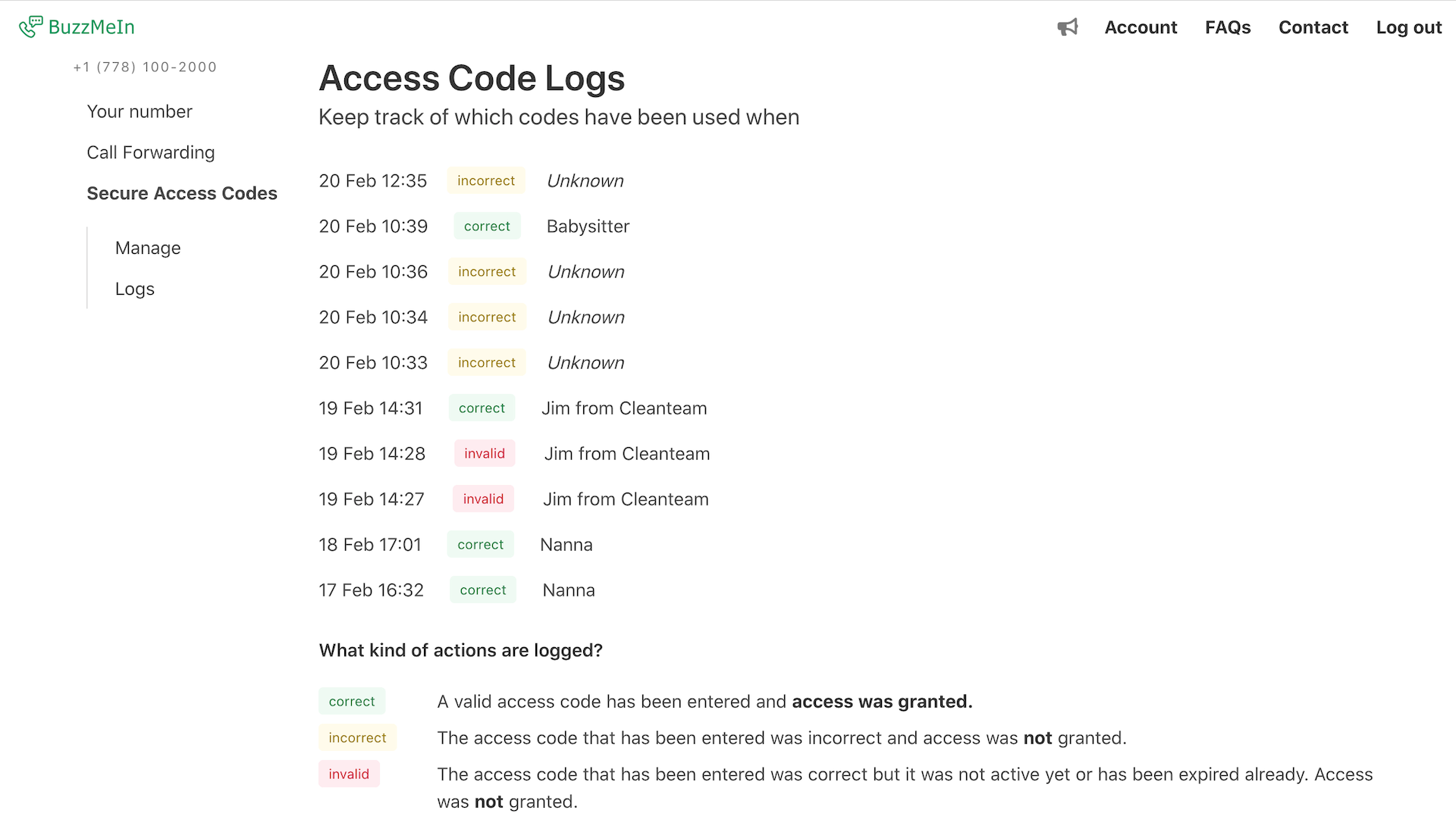 This is just the beginning of Access Logs on FreshBuzzer! I'm already planning to add them for call-forwarding as well... maybe even introduce notifications?! Let me know what you think and if you have any ideas on how to take this further, or sign up now for your free trail of FreshBuzzer with Access Code Logs!